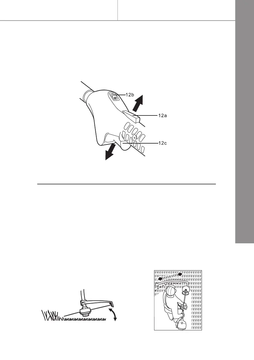 > Release the throttle interlock (12a) and throttle control