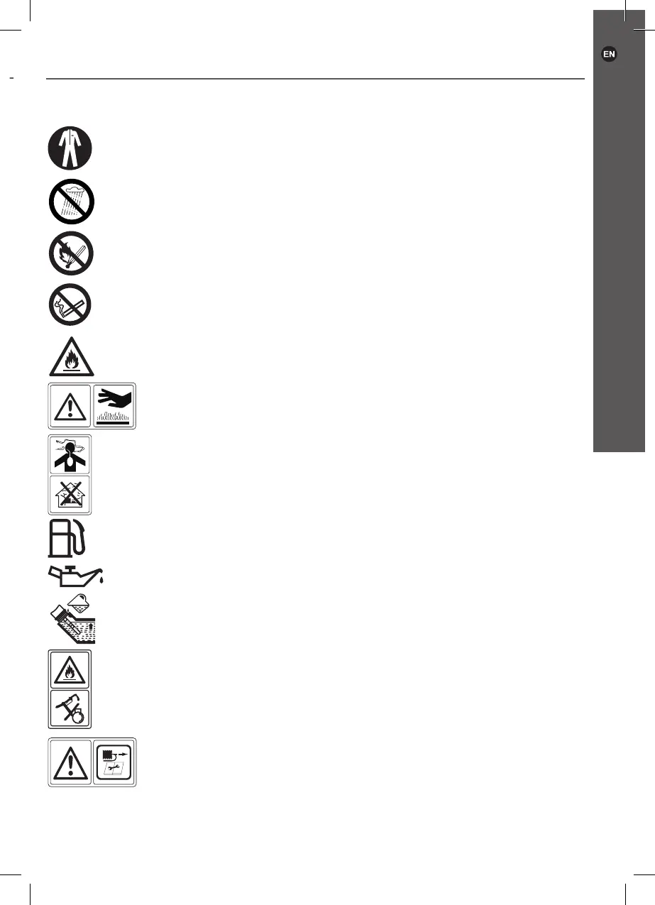 Stop the engine before refuelling the fuel tank. Flammable material.