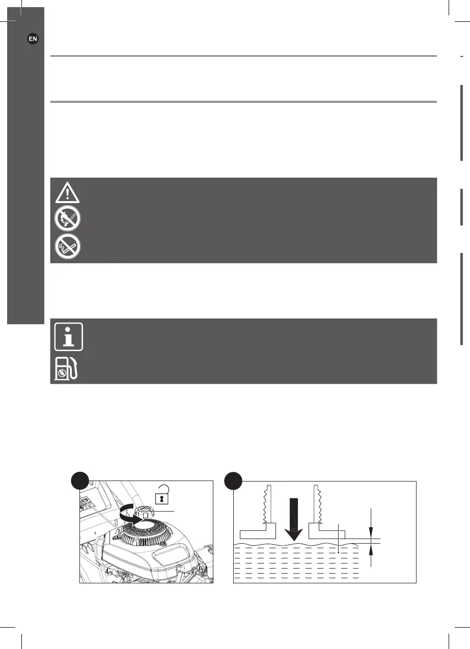 NOTE: Petrol deteriorates over time. It may be difcult to start the engine if