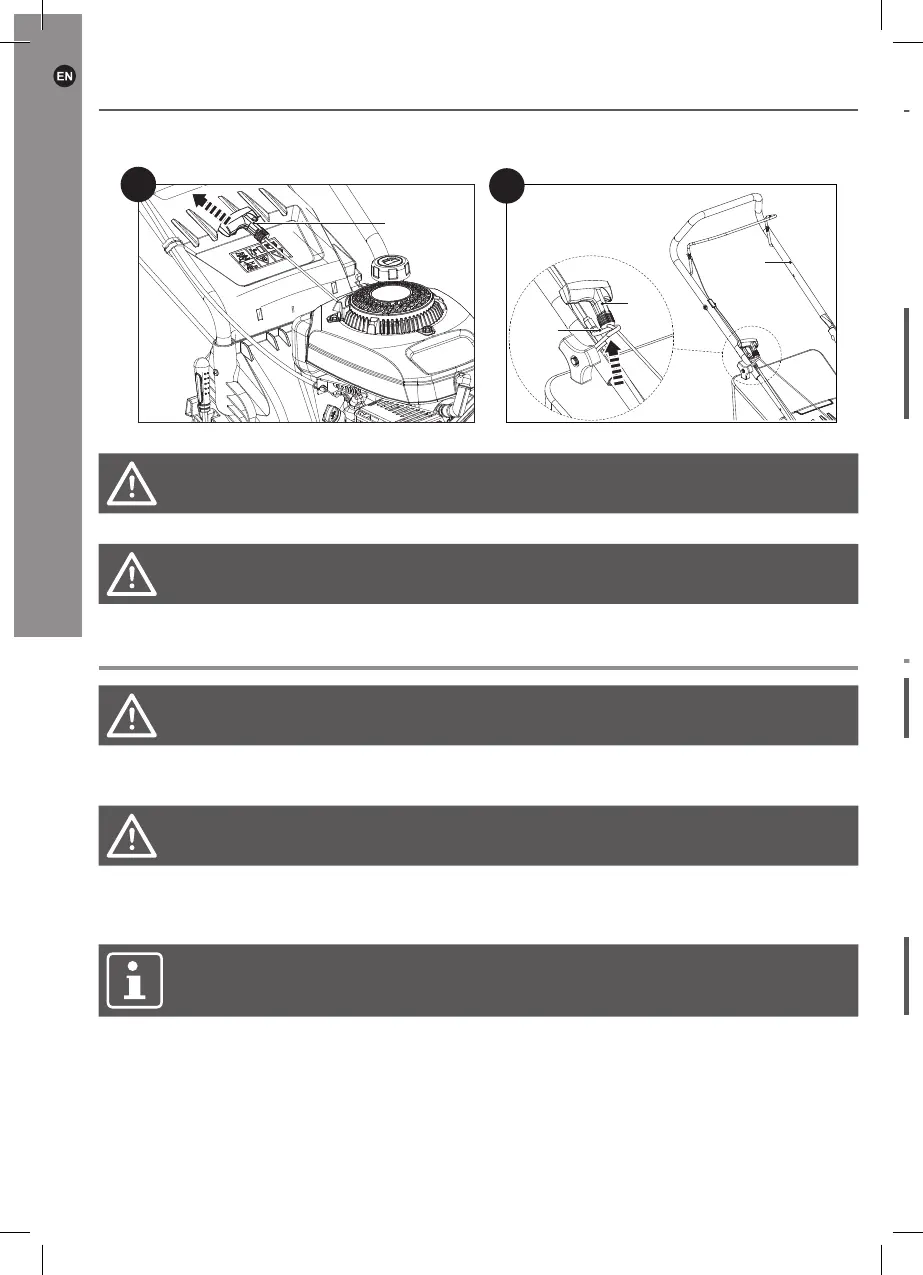 WARNING! Before adjusting the cutting height, stop the engine and wait until