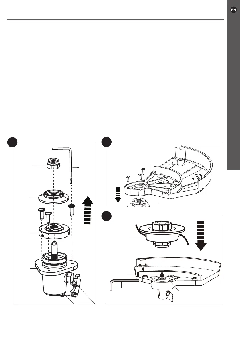 9. Screw the trimmer head (28) onto the spindle anti-clockwise securely.