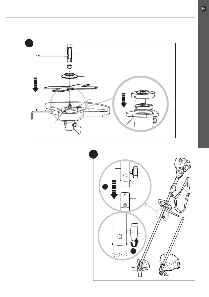 11. Make sure the cutting blade (24) is rmly tightened and remove the hex key (36).