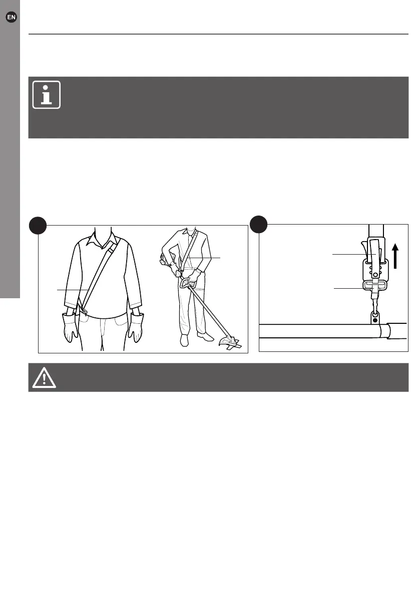 4. Adjust the length of the harness (10) so that the weight of the machine is balanced and