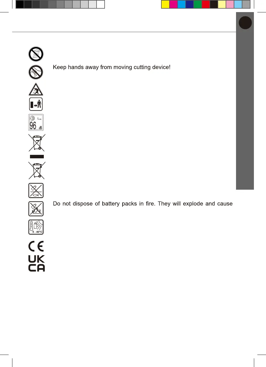 Crossed out dust bin. Batteries and battery packs should not be