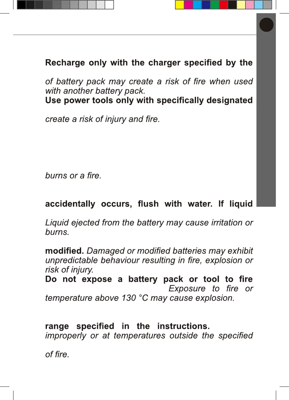 5. Do not use battery pack or tool that is damaged or