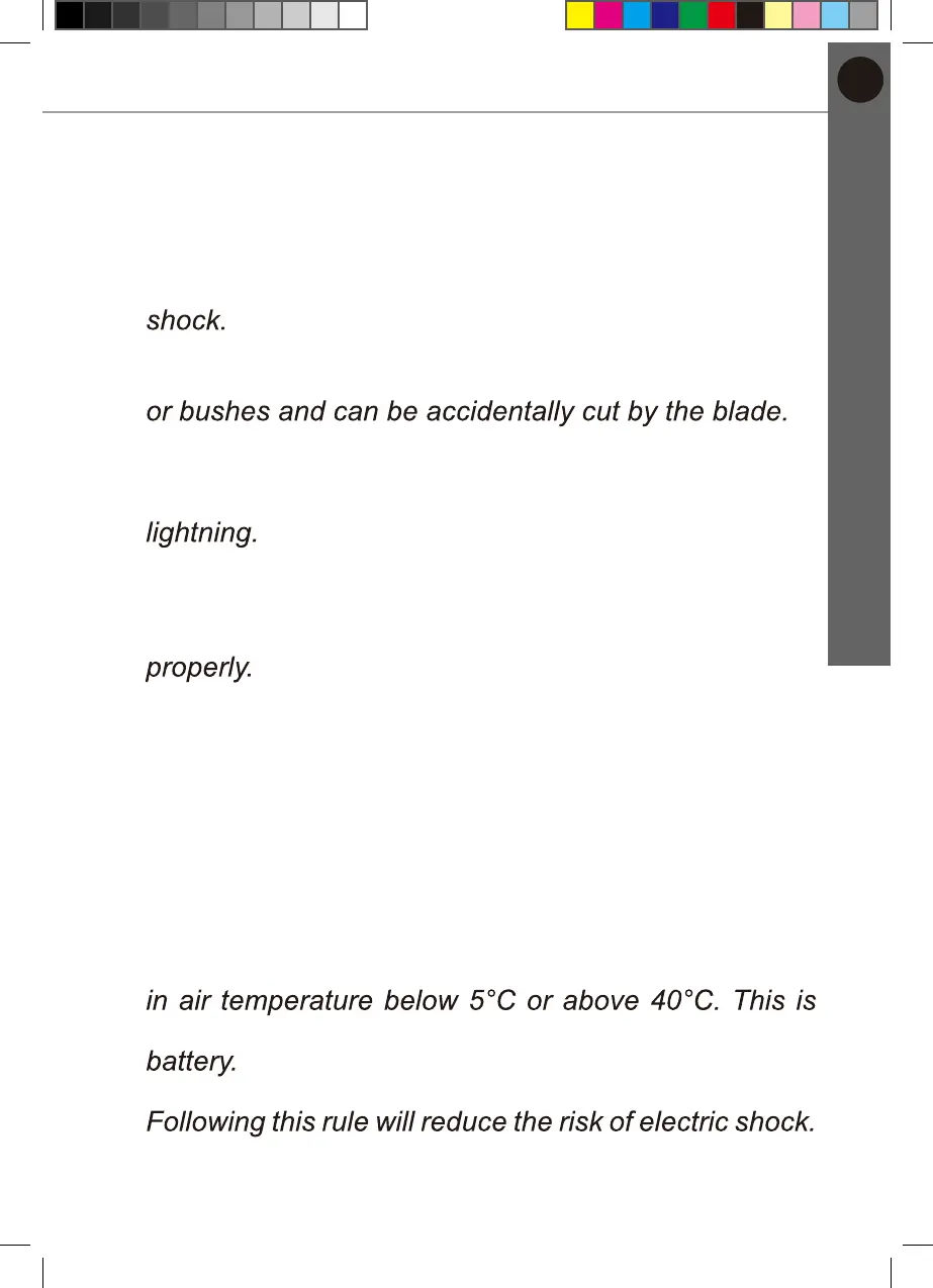 7. Do not use the hedge trimmer in bad weather