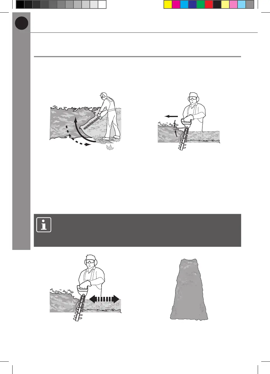 7. When cutting wide hedges with the cutting area in sight move the cutting