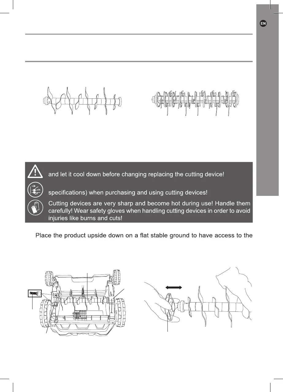 The product has two functions, raking and scarifying. The scarifying cylinder is pre-