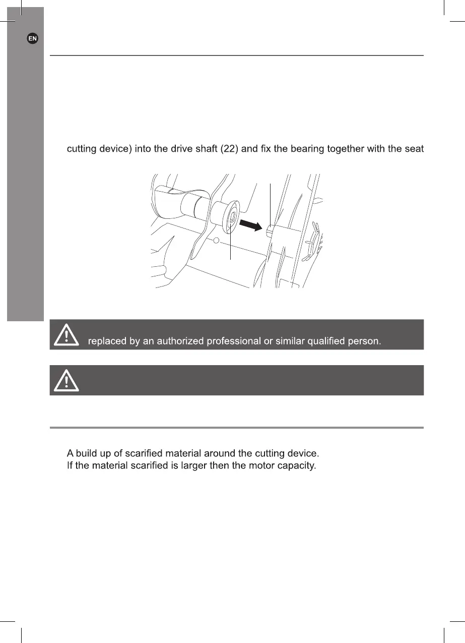 4. To change the cutting device (21), raise the bearing seat (23) then withdraw the