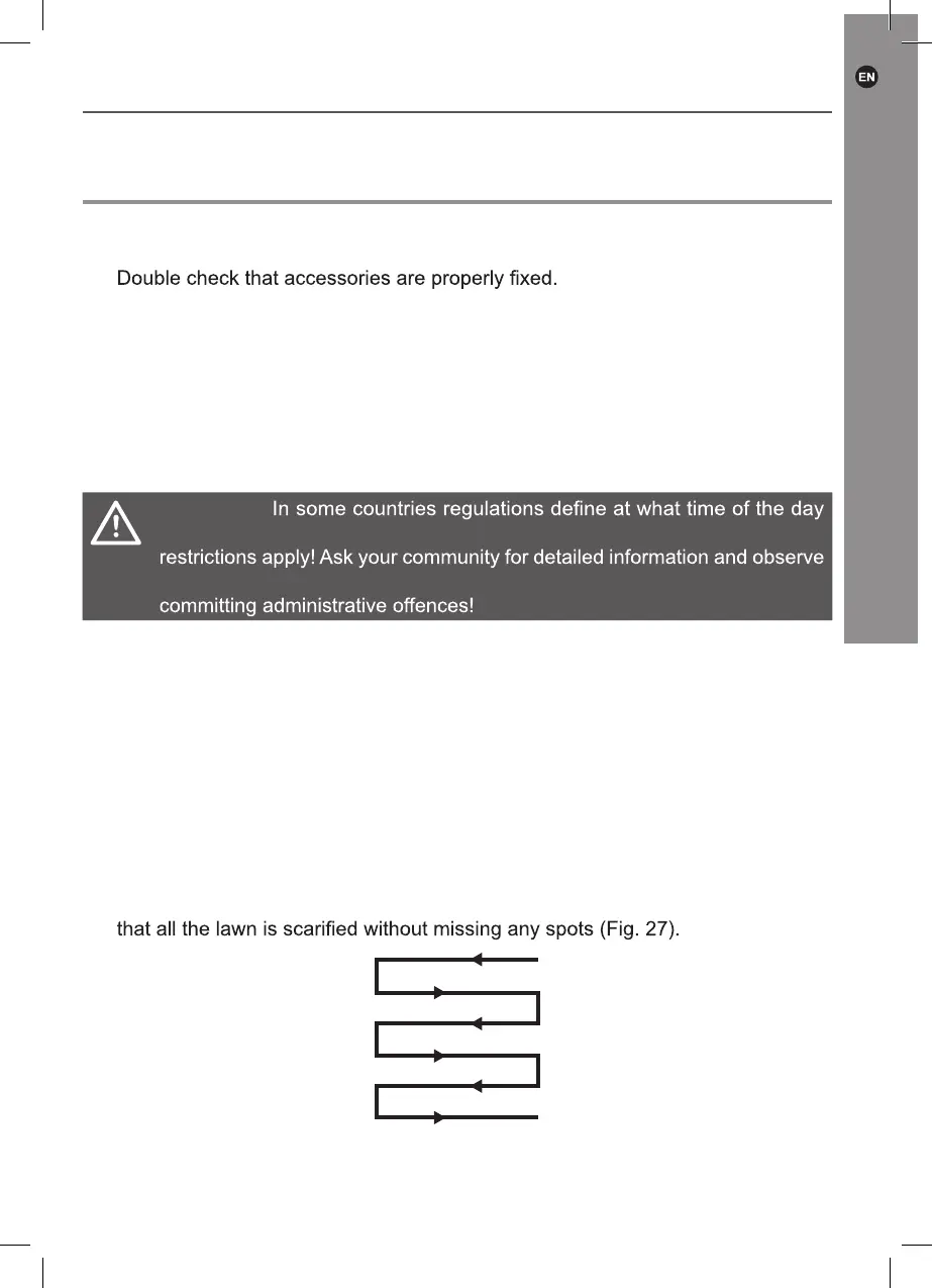 Work in slight overlapping rows. The most effective pattern for scarifying lawns