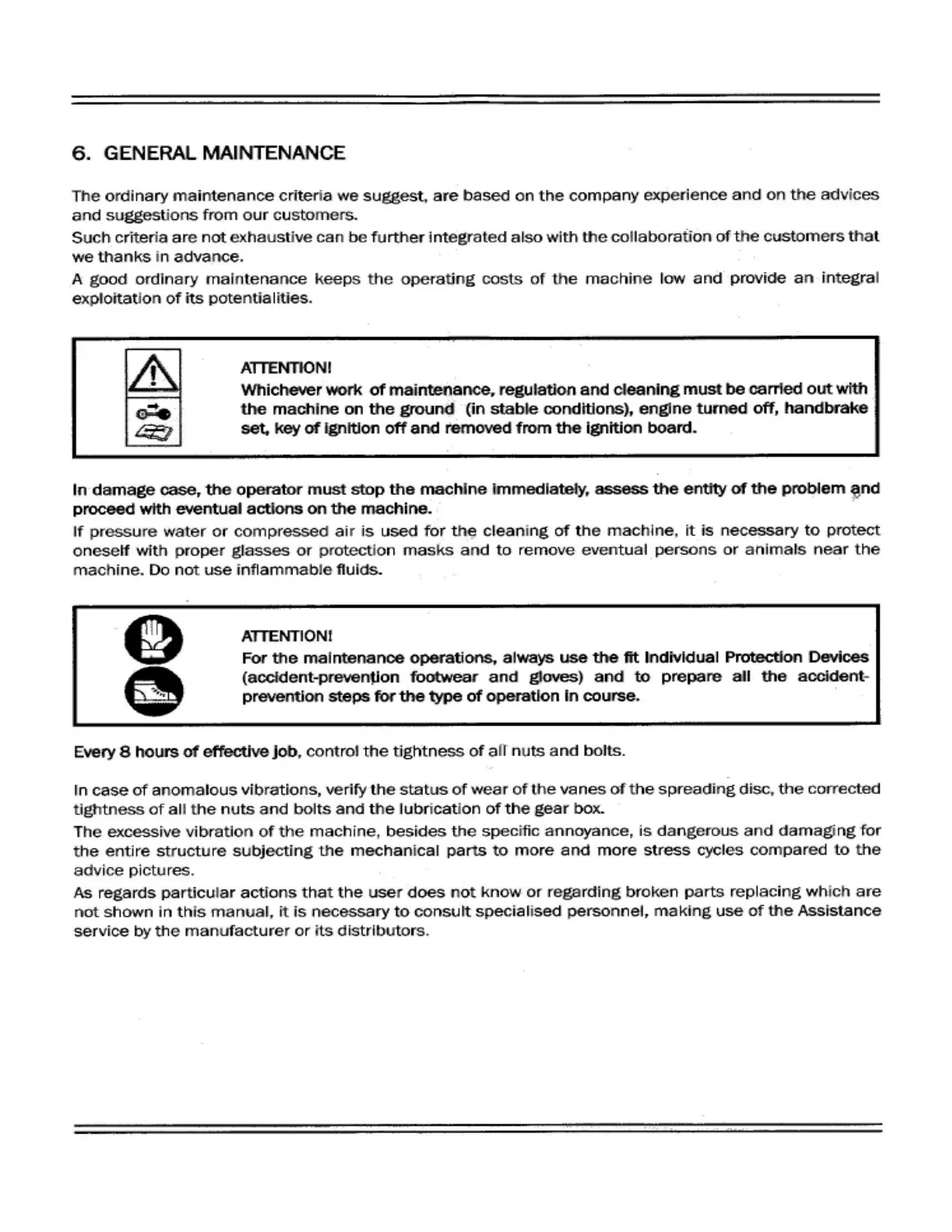 KingKutter S-500 - 6. GENERAL MAINTENANCE; ATTENTION! - Maintenance Safety Precautions; ATTENTION! - Personal Protective Equipment for Maintenance