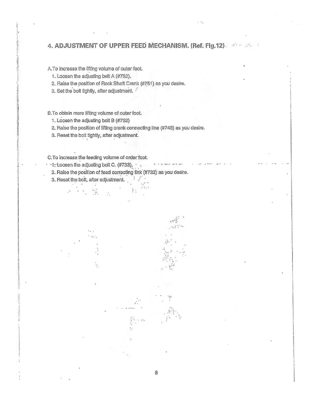 1. Loosen the adjusting bolt B (#752)