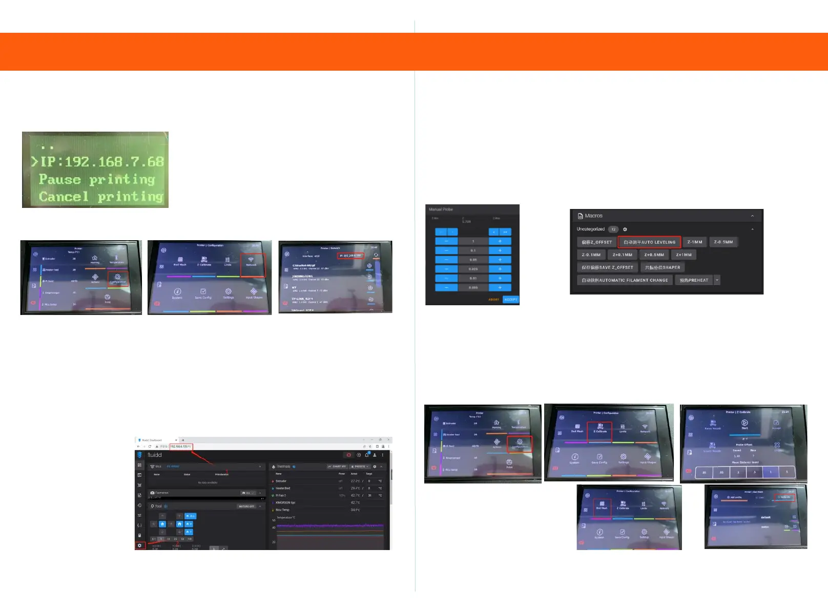 3.5 Touch screen: Click on Configuration, Z calibrate, Start, wait
