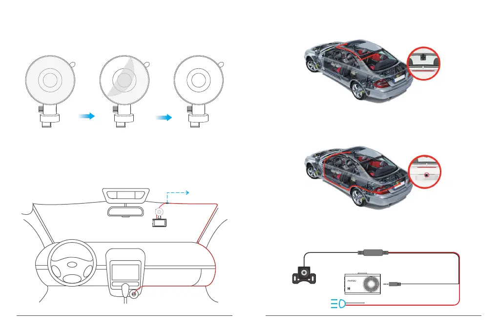 Position 1: Install the Rear Camera on the rear windshield. The installation is easier.