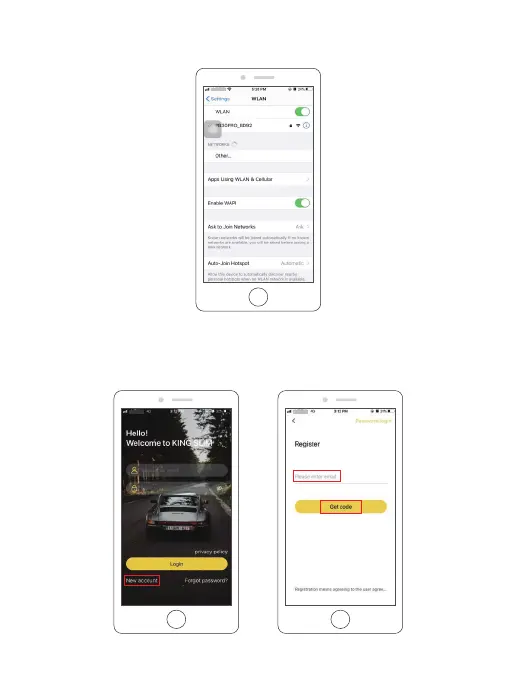 ④ Open the “KINGSLIM” APP, tap the “New Account” icon, enter your email and get the