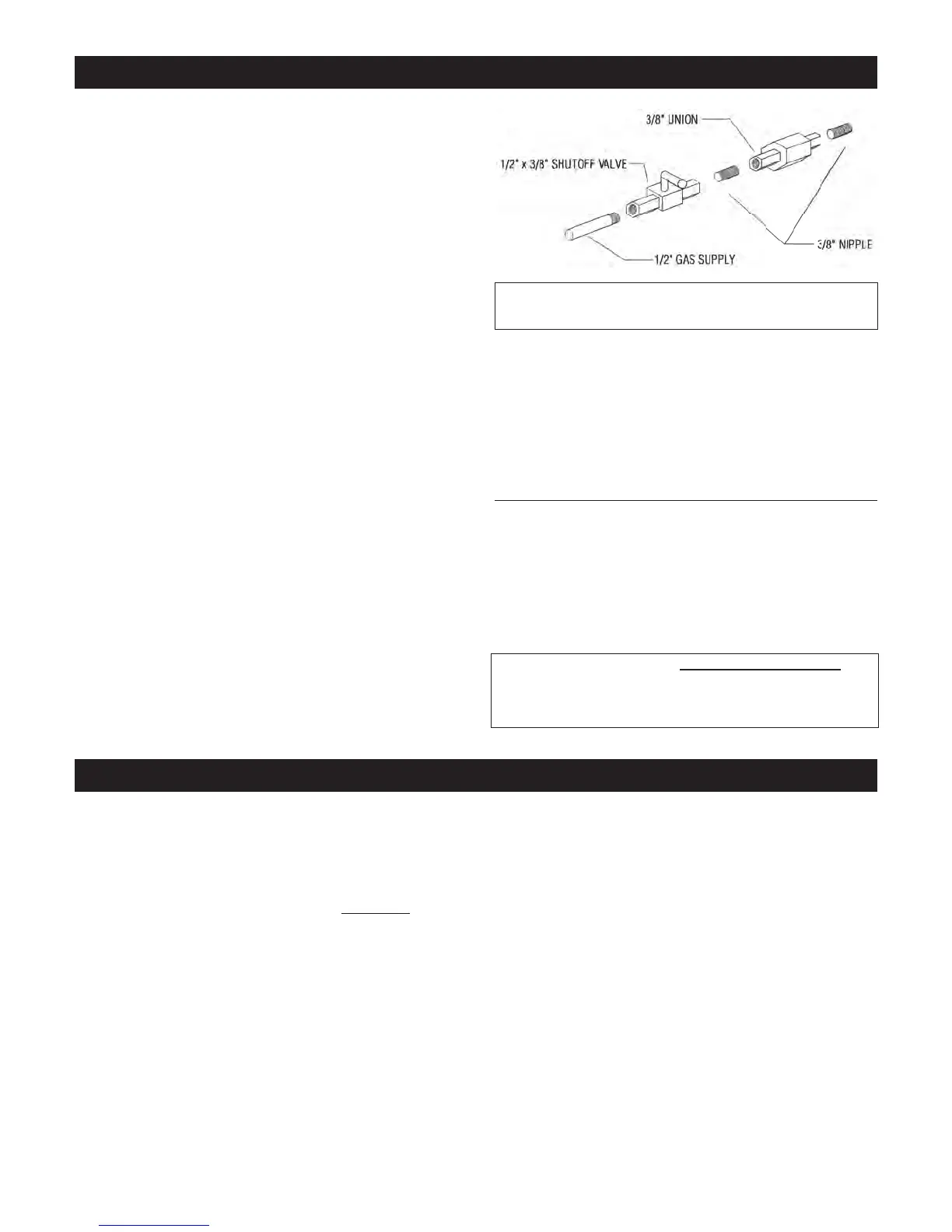 Note: The gas line connection may be made of 1/2” rigid pipe or an approved