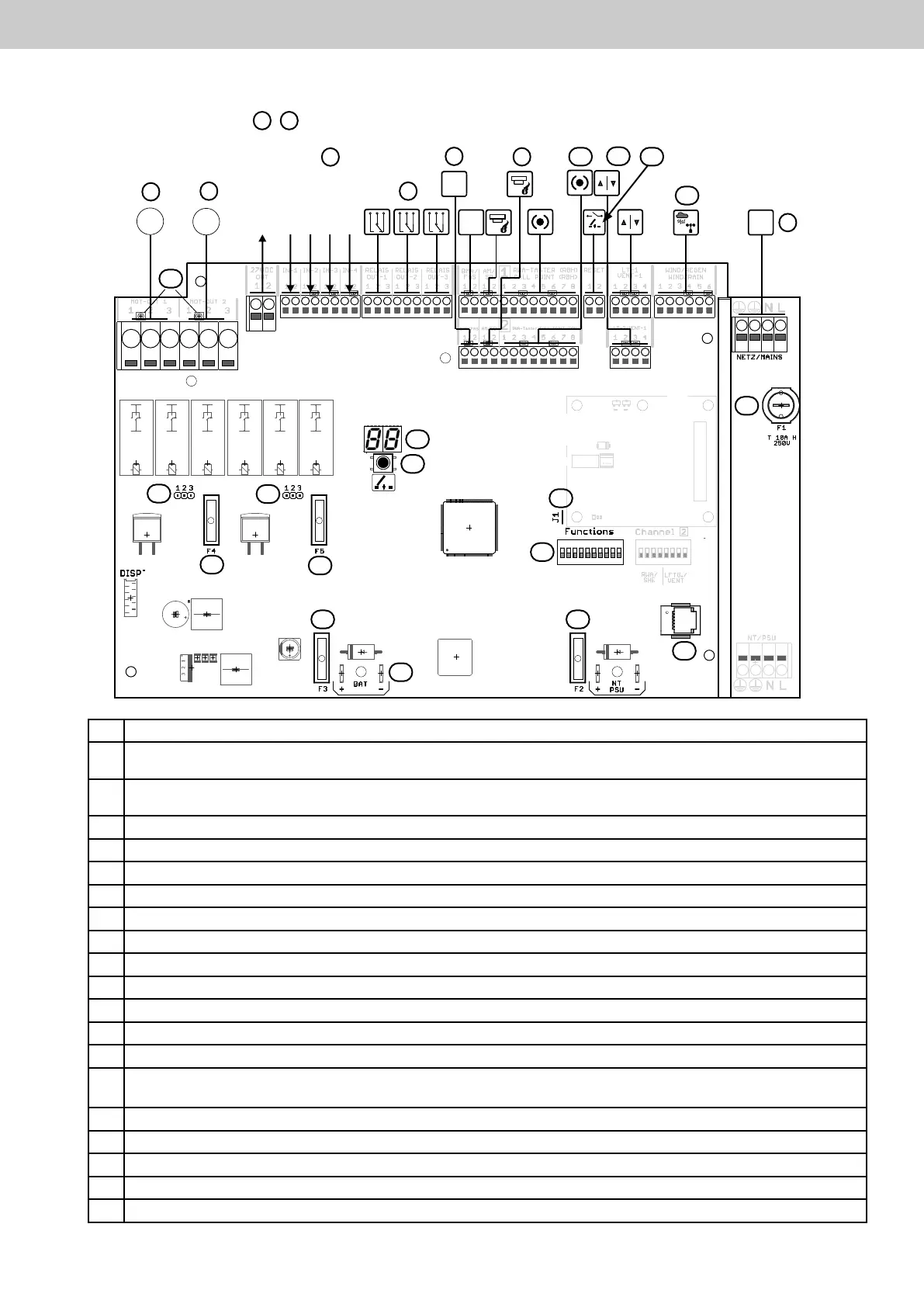 10 2 x Eingang RWA-Bedienstellen (Kanal 1 und 2), maximal 10 Stück pro Kanal