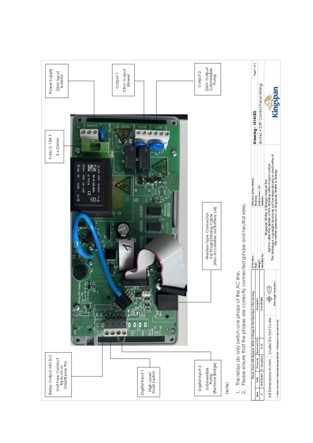Kingspan Klargester BioTec+ Control Panel - Installation; Wiring Diagram