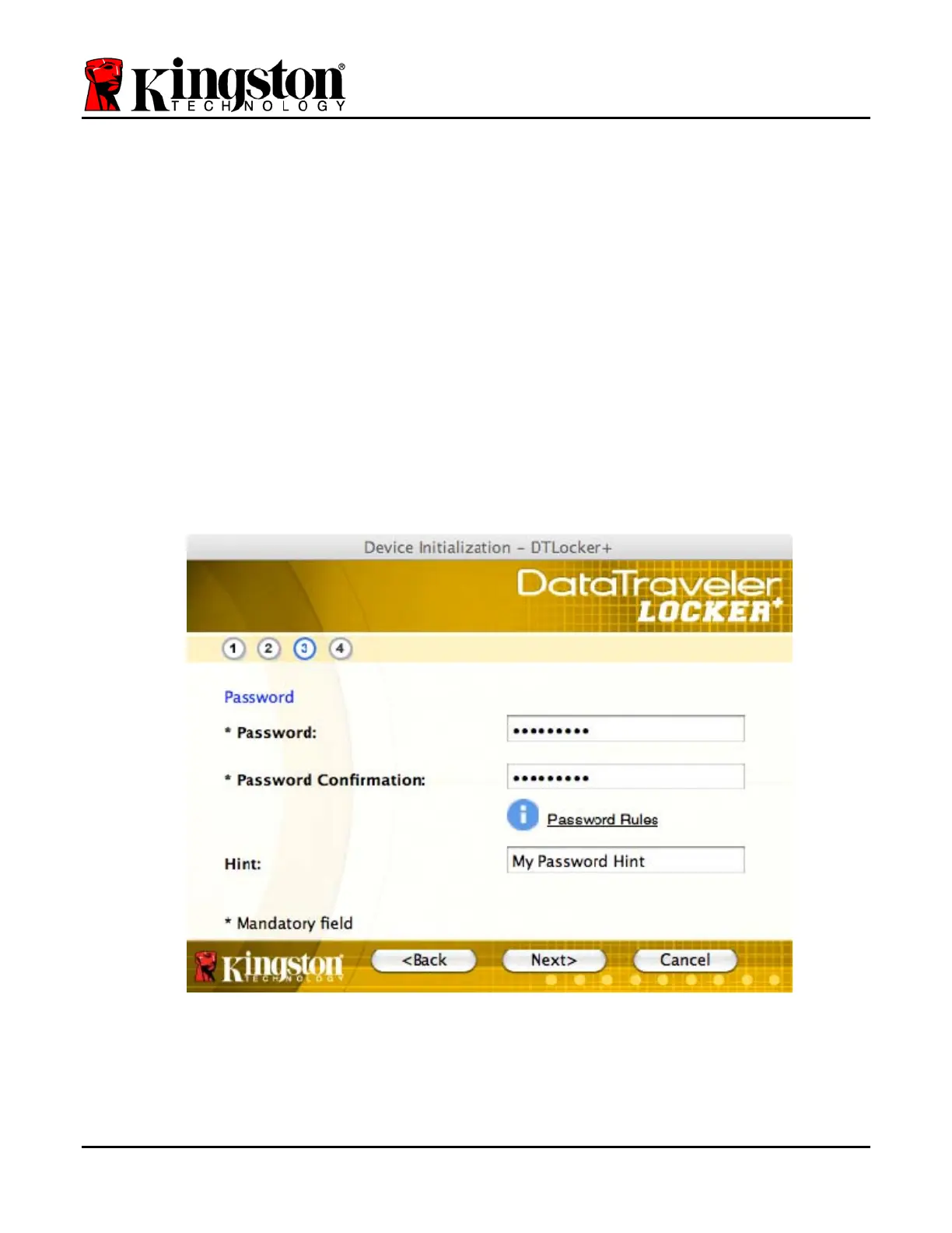 You may also enter a password hint, but it is not a mandatory field. The hint field can be