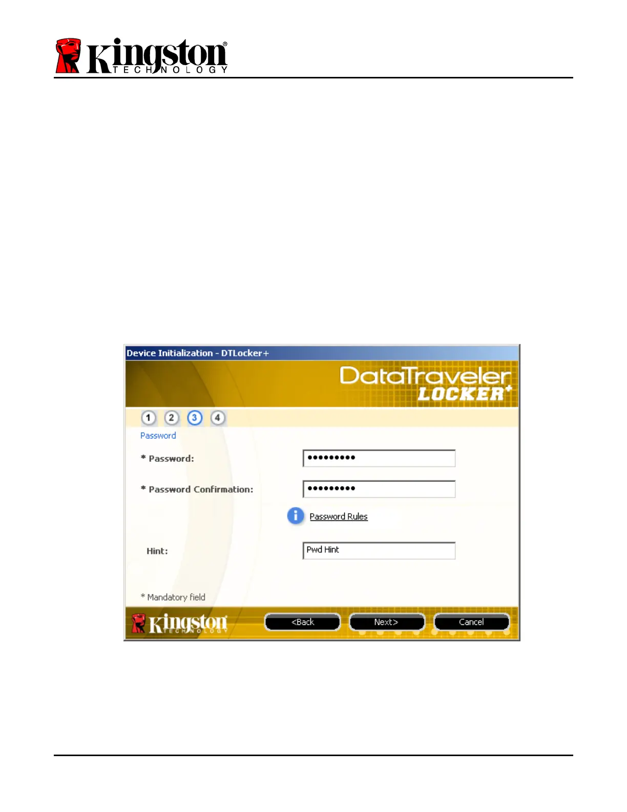 You may also enter a password hint, but it is not a mandatory field. The hint field can be