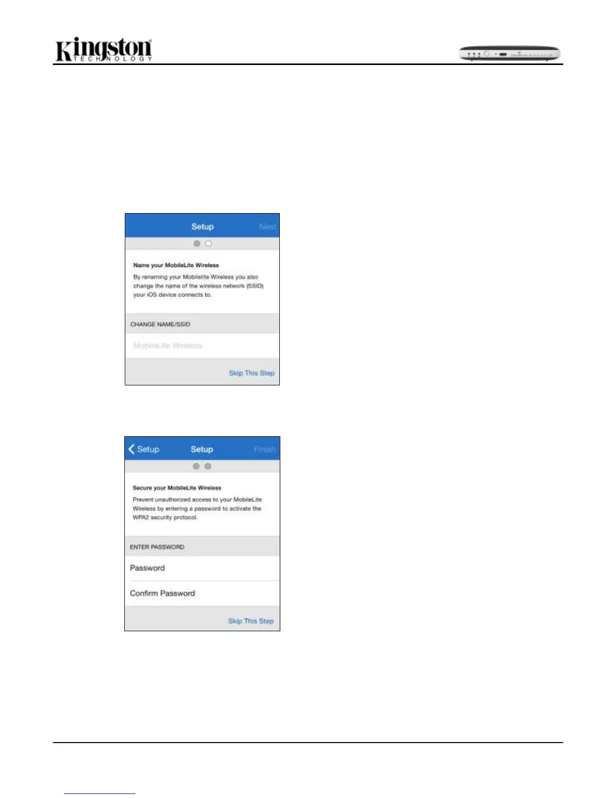 launching the Kingston MobileLite application. There are 3 quick simple steps that require your attention before