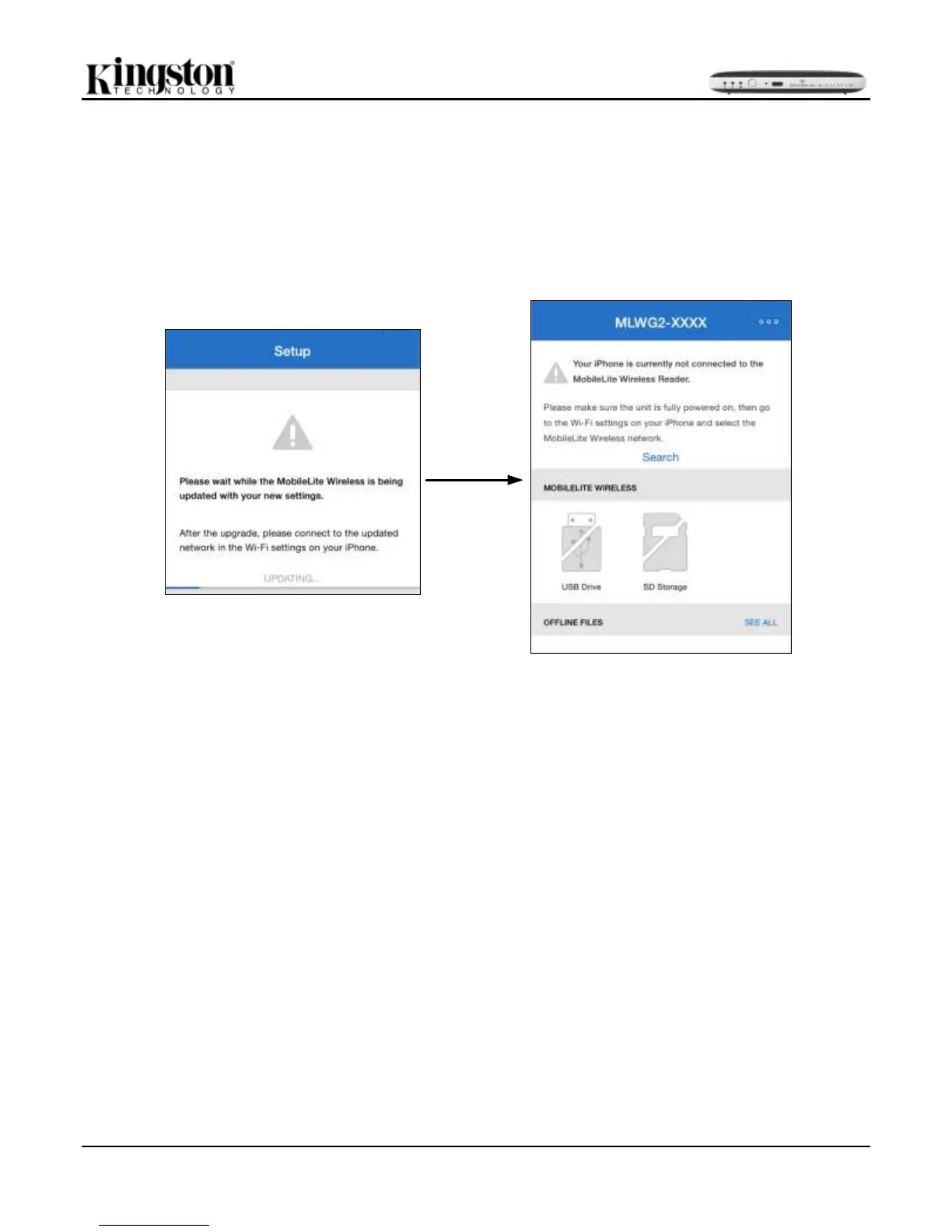 Once the update process is complete the next screen will prompt the user to connect to the MobileLite Wireless