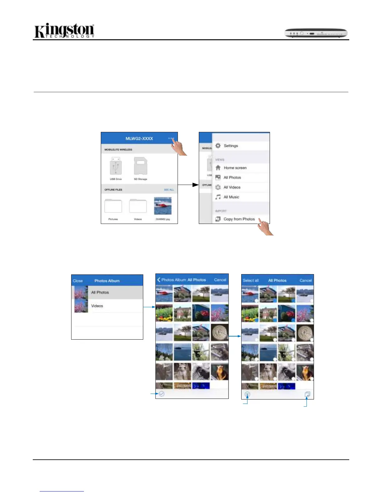 The Kingston MobileLite App allows users to import photos and video from their iOS Camera Roll to a USB or