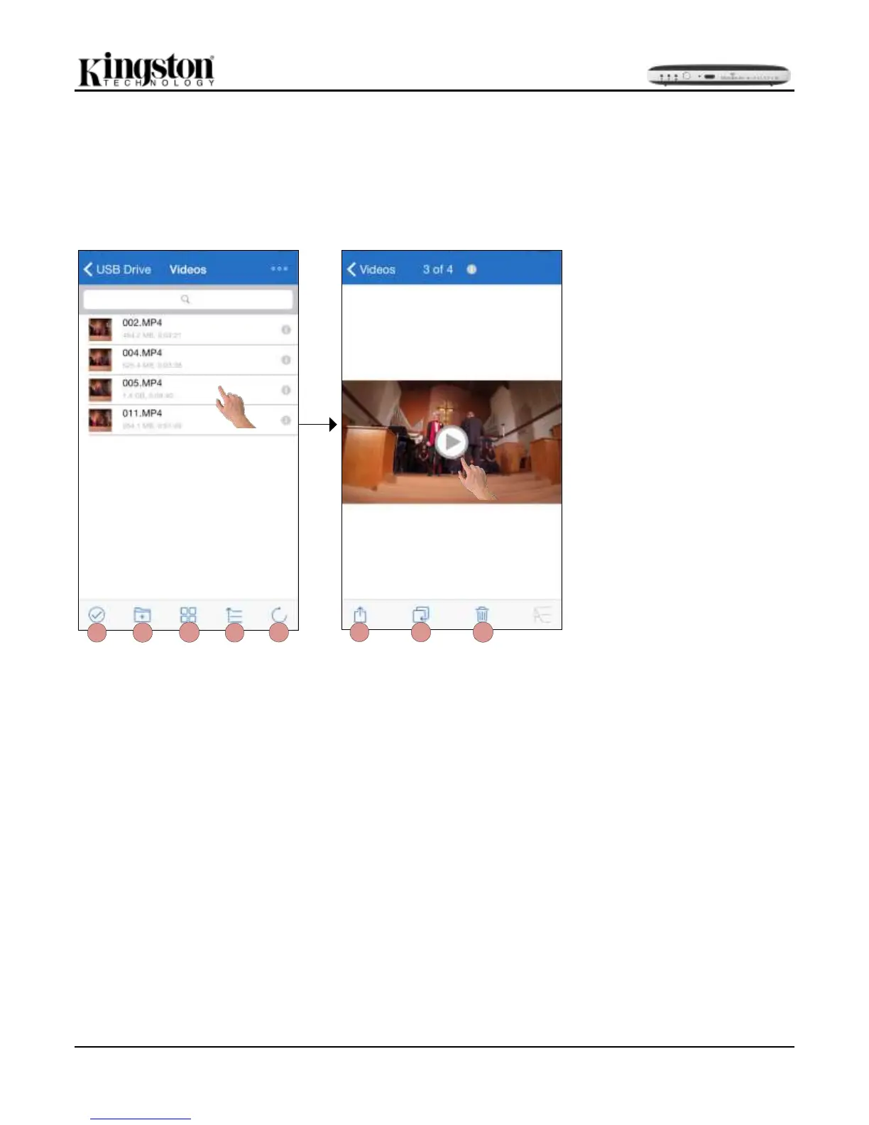 Note: Digital rights management (DRM) content is not supported by the Kingston MobileLite App. Apple