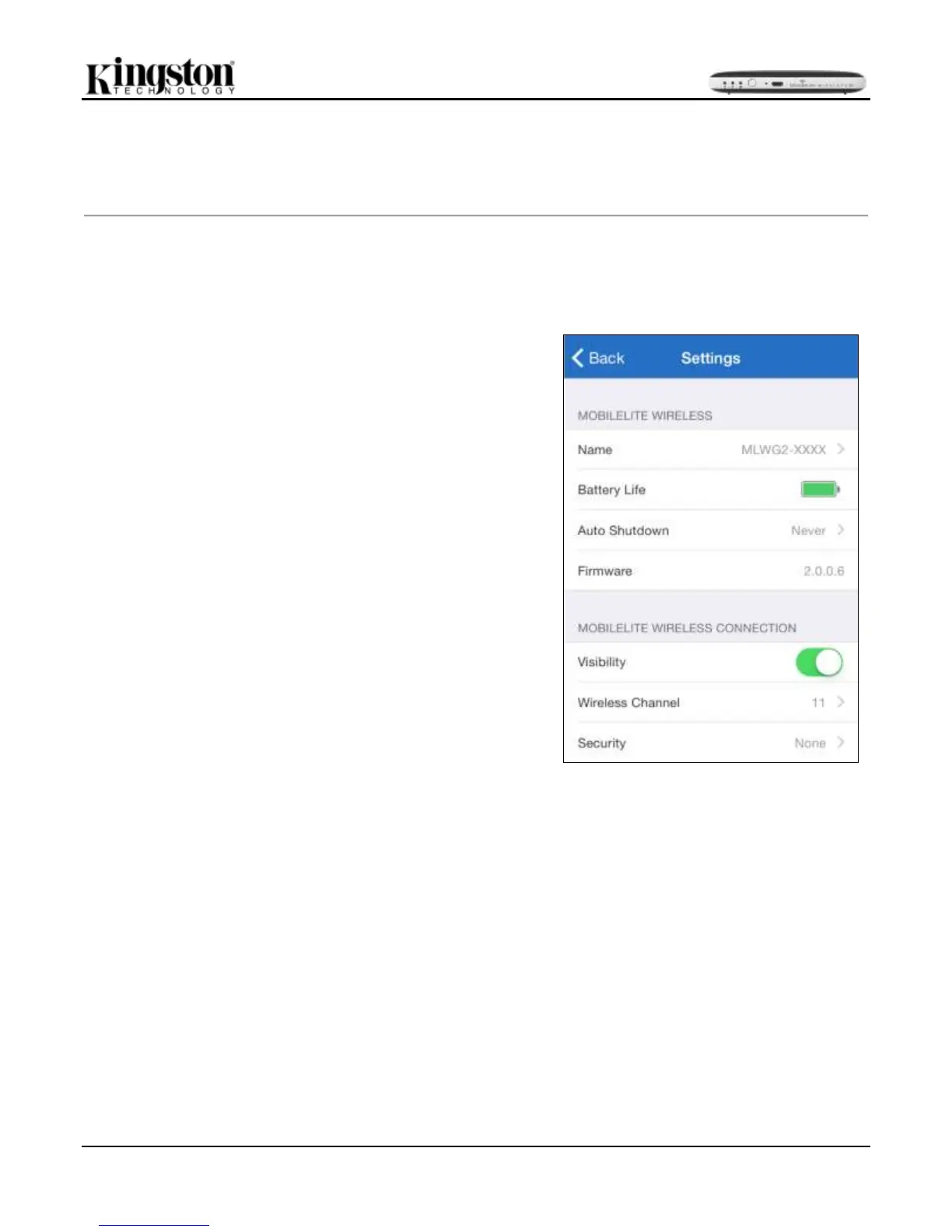 Using the Kingston MobileLite App, you can customize the wireless network settings for MobileLite Wireless G2.