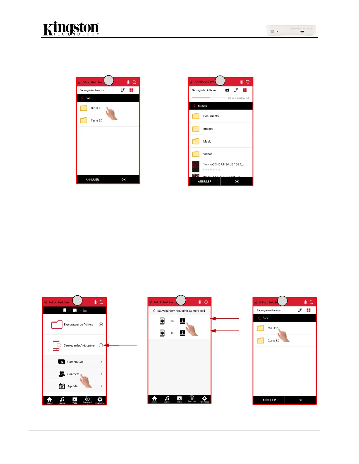 3. Sélectionnez le dossier destinataire (clé USB, carte SD).