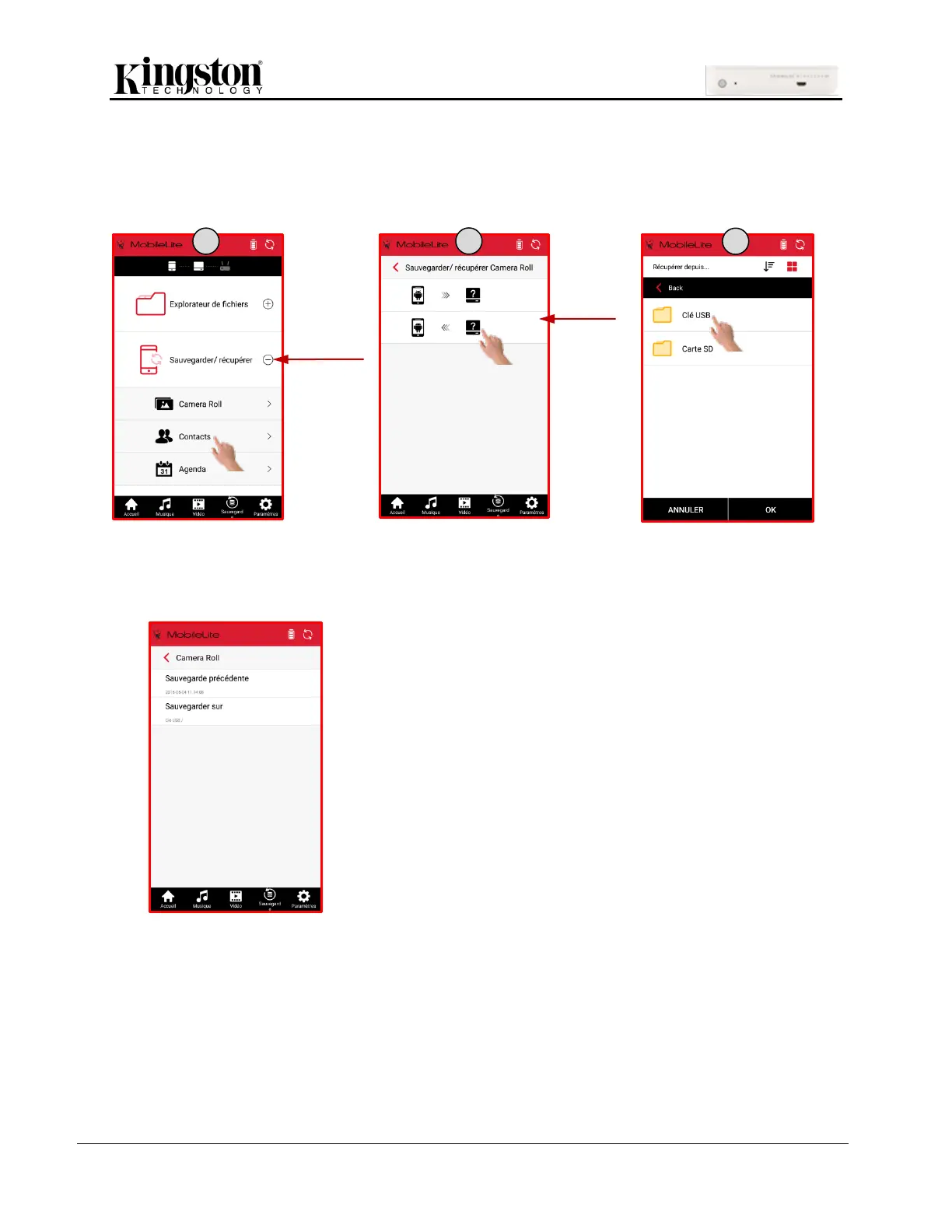 1. Cliquez sur une des options Camera Roll, Contacts, ou Calendrier sous Sauvegarder/ récupérer.