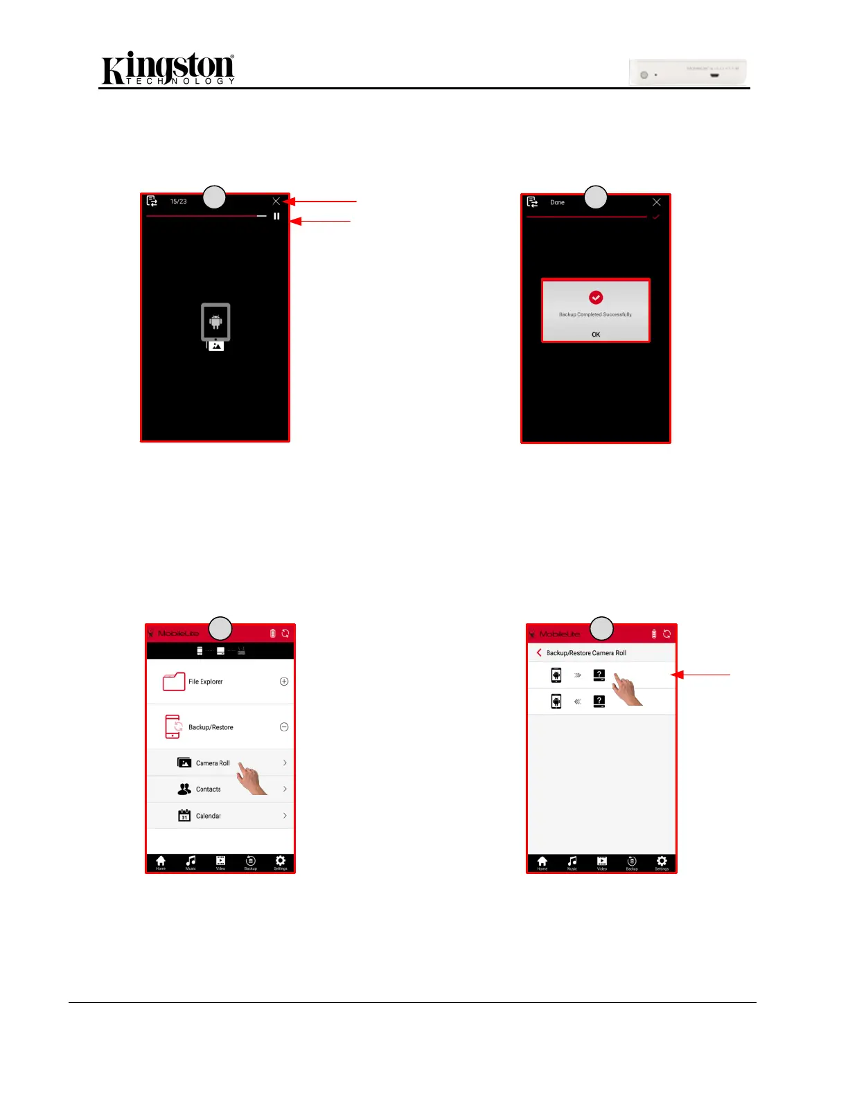 Note: In order to continue to back up from the previous successful location in camera roll, the same storage device
