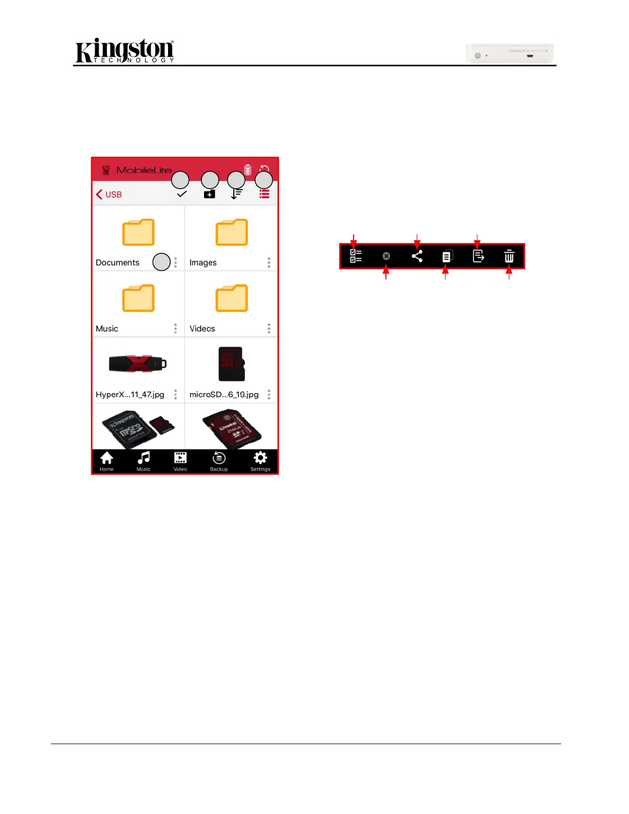 renaming content. To get started, simply tap on USB or SD; doing so will enable various options.
