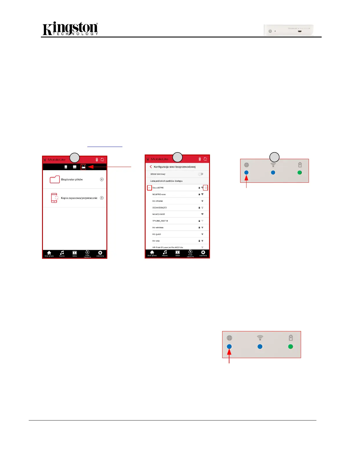 portu Ethernet w czytniku MLWG3 firmy Kingston. Spowoduje to utworzenie punktu dostępu umożliwiającego