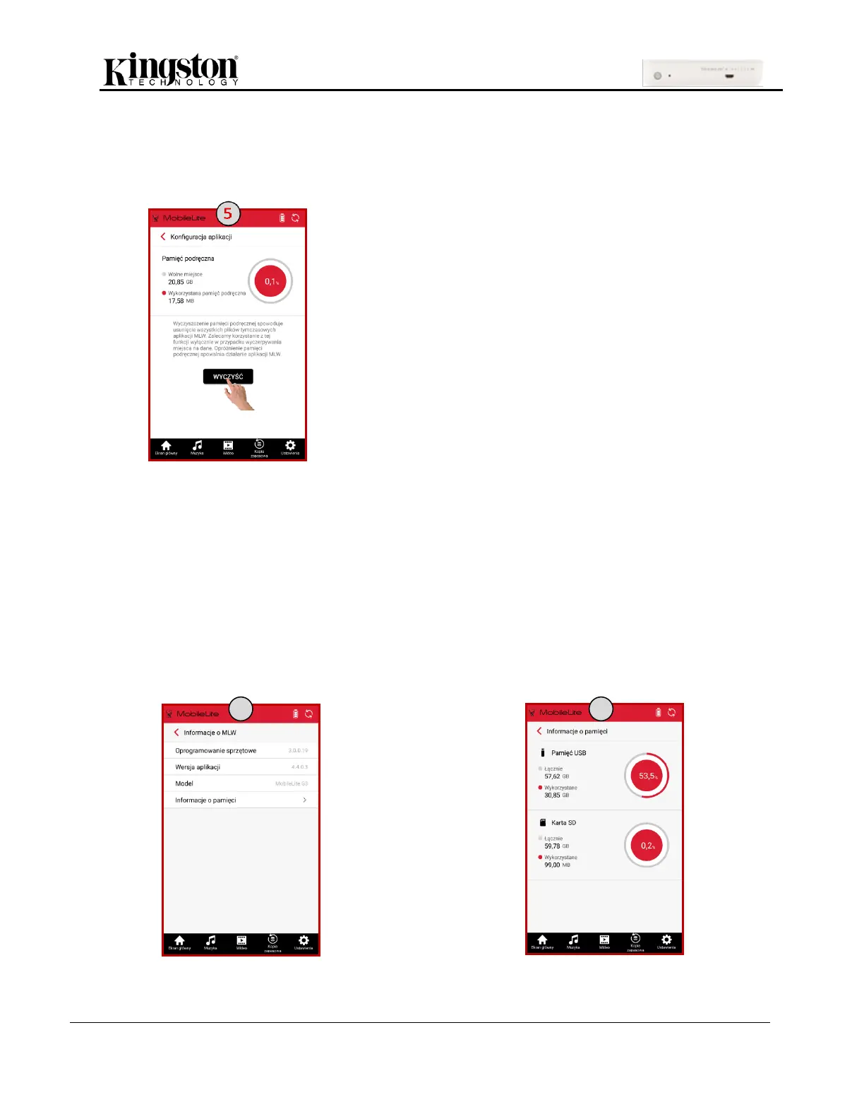 aplikacji oraz modelu czytnika MLW oraz danych pamięci (urządzeń pamięci USB i kart SD).