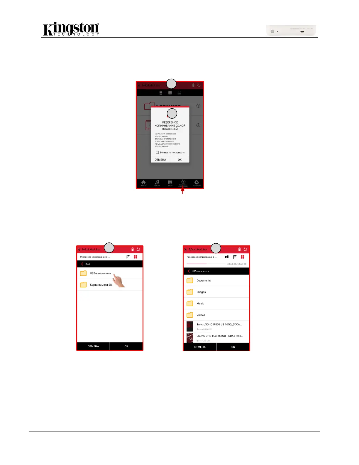 3. Выберите место для хранения (USB-накопитель или карту памяти SD)