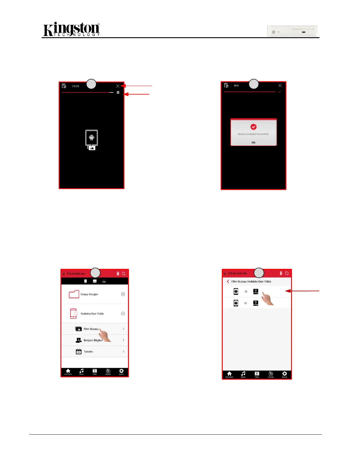 Not: Film rulosunda daha önceki başarılı konumdan yedeklemeye devam etmek için aynı saklama cihazının ve