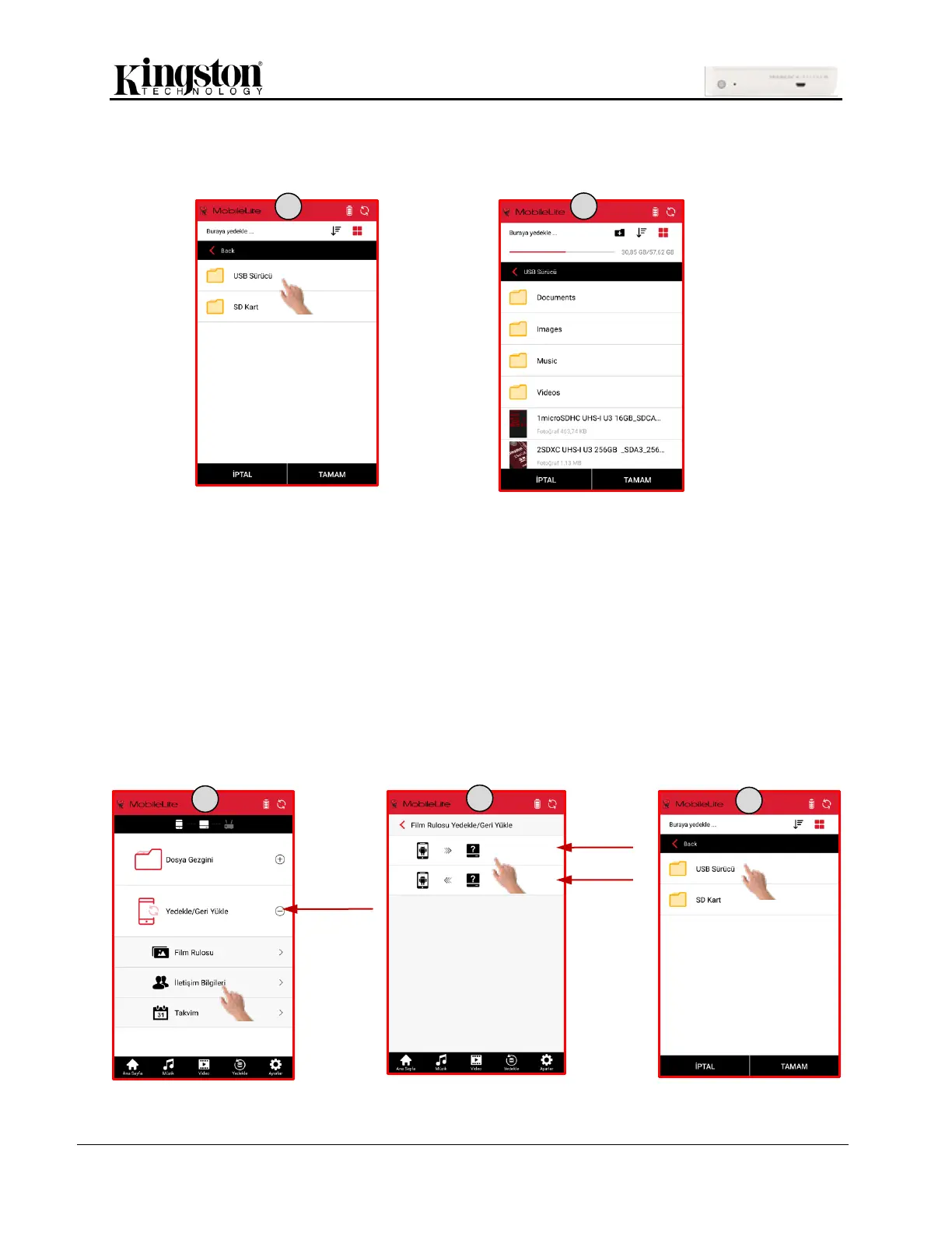3. Saklama yerini (USB Sürücü ya da SD Kart) seçin ve yeni bir klasör oluşturun ya da mevcut bir