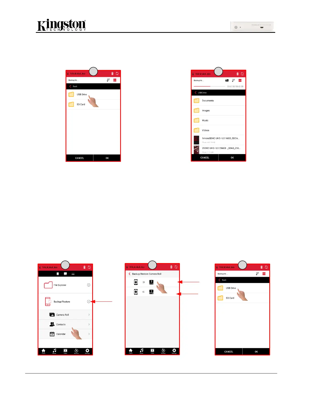 MLW 앱은 모바일 장치에 저장된 연락처 및 일정 내용들을 USB 또는 SD 카드 스토리지 옵션에 백업할 수