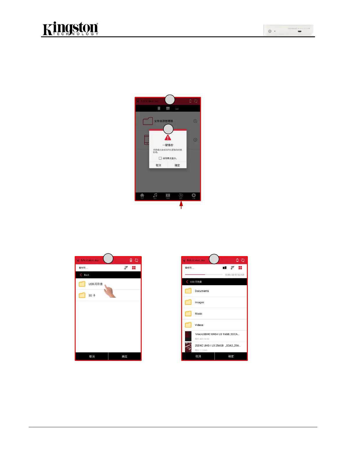 Kingston Technology MobileLite Wireless G3 - 使用一键备份