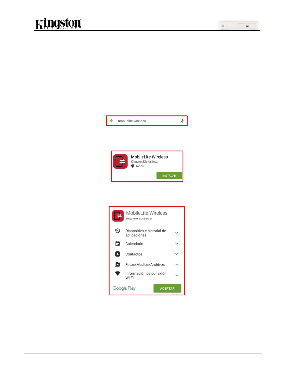 2. Una vez localizada la aplicación ‘MobileLite Wireless’ deKingston Digital, Inc., pulse el botón de