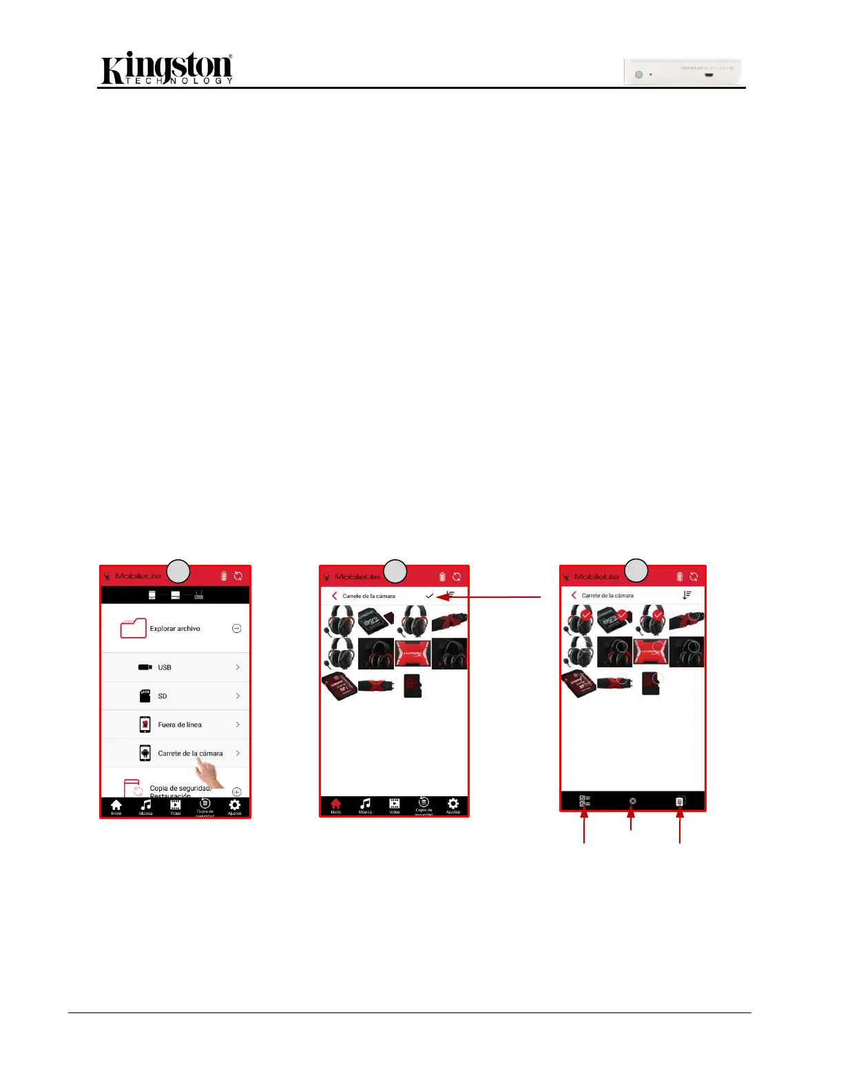1. La opción ‘Carrete’ permite seleccionar una o varias fotos/vídeos para hacer copias de seguridad