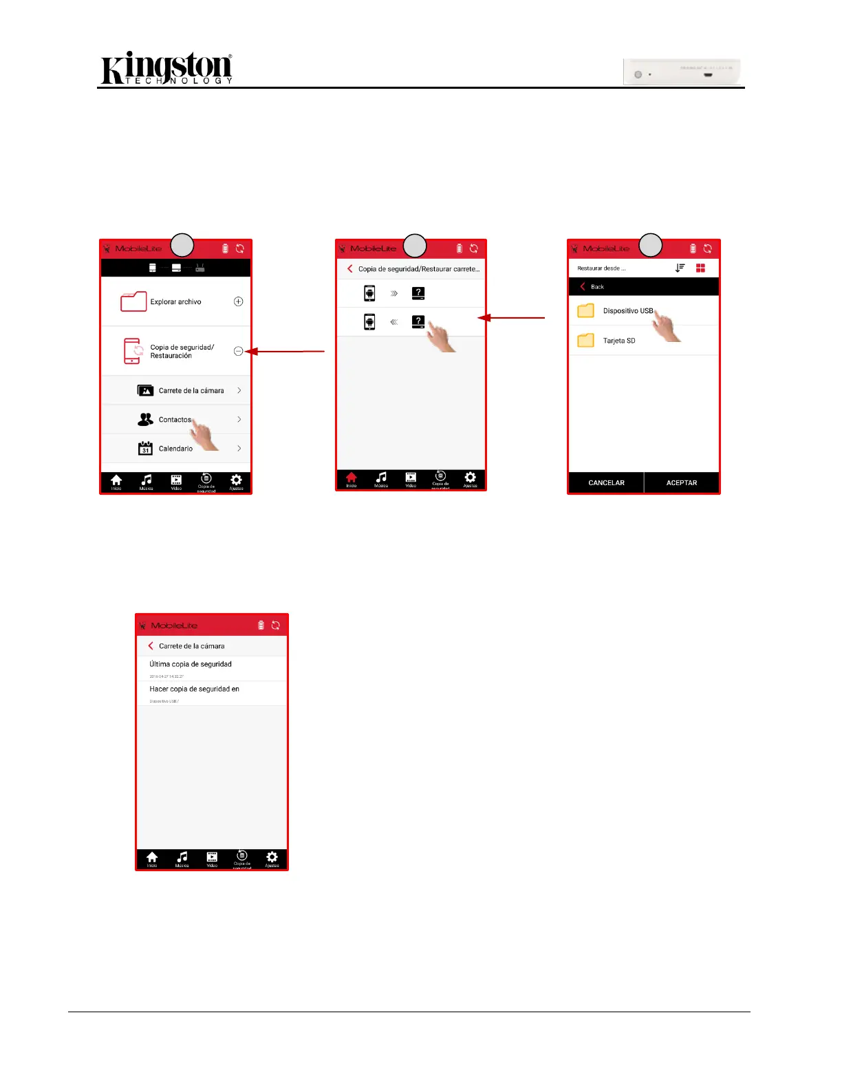 Para ir a la configuración de Copia de seguridad/Restaurar: