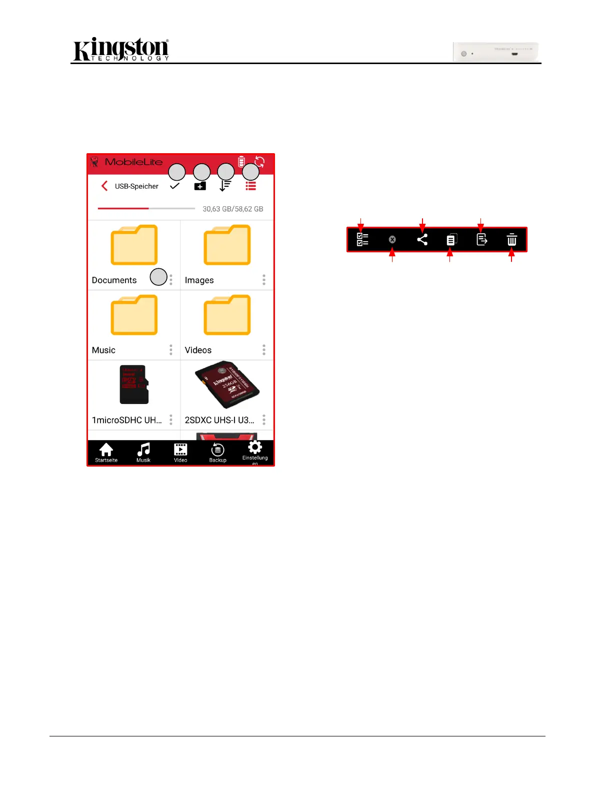 Zu den Funktionen der MobileLiteWireless App gehört, dass Sie die auf ihren Speichergeräten gespeicherten