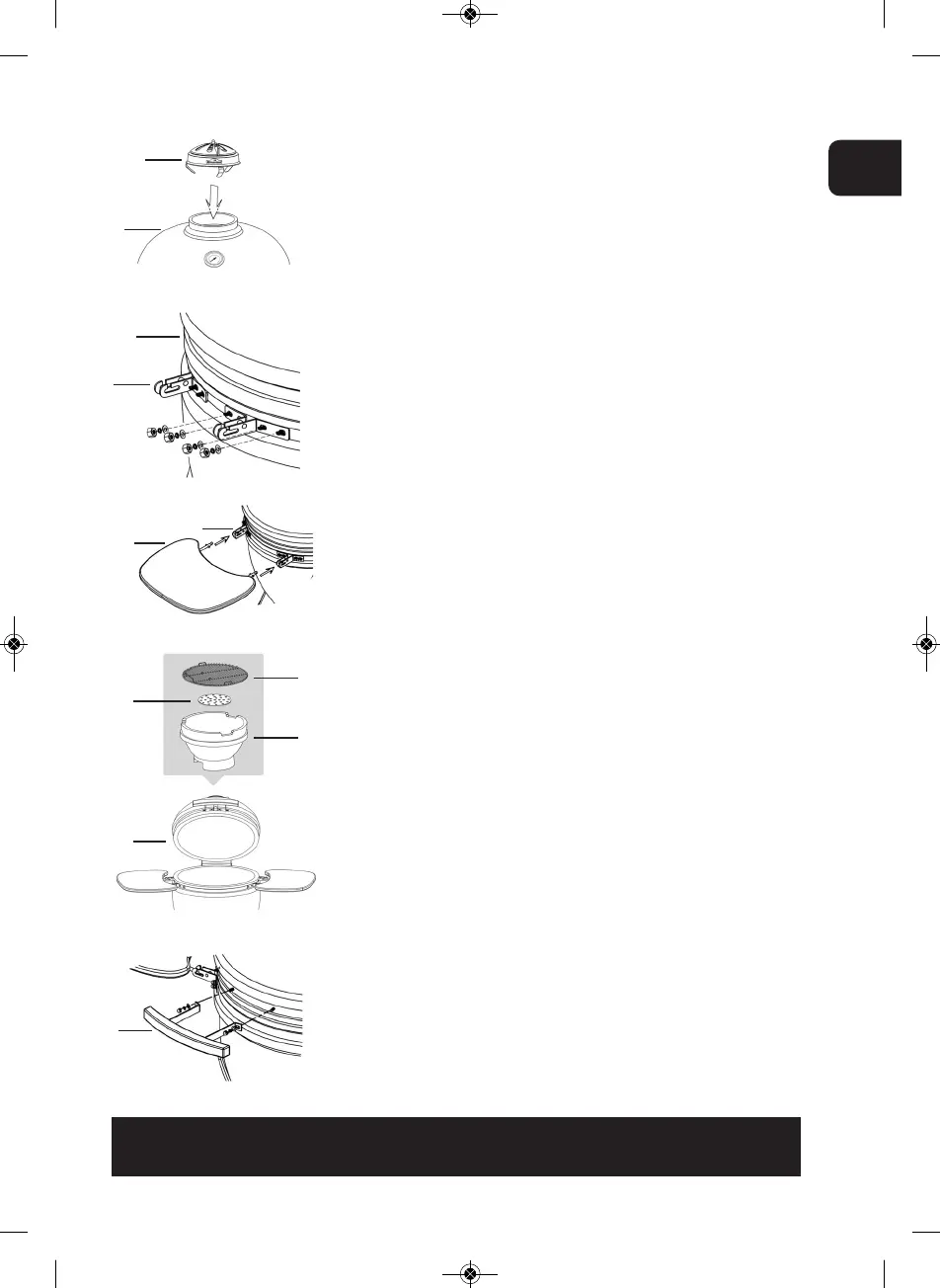Sobald der Grill sicher auf dem Wagen ruht, befestigen Sie die obere