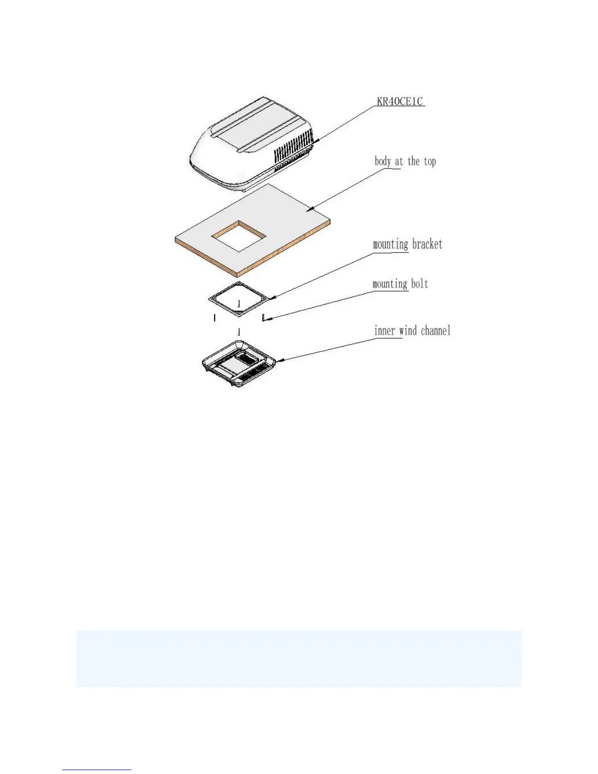 1. Install the unit on the front part of the top van,ensure the unit exhaust in