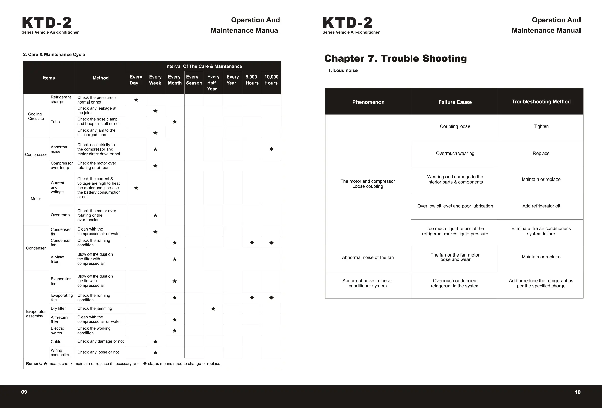 Kingtec KTD-2 - Chapter 5. Unit Operation (continued); Working Mode Descriptions; Fault Code Interpretation; Chapter 6. Daily Check and Maintenance (continued)