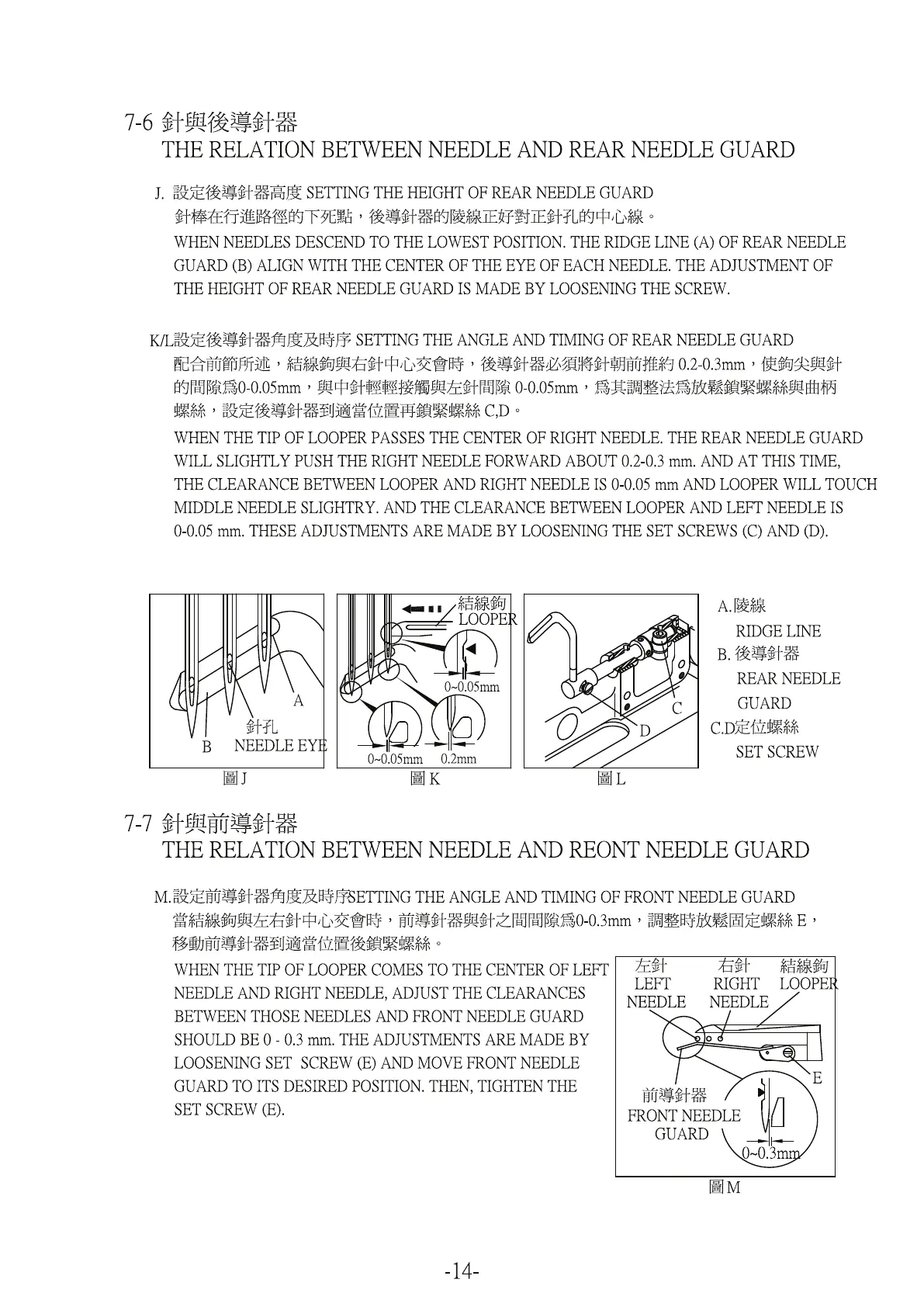 Kingtex FTD Series - Needle and Rear Needle Guard Relation; Needle and Front Needle Guard Relation