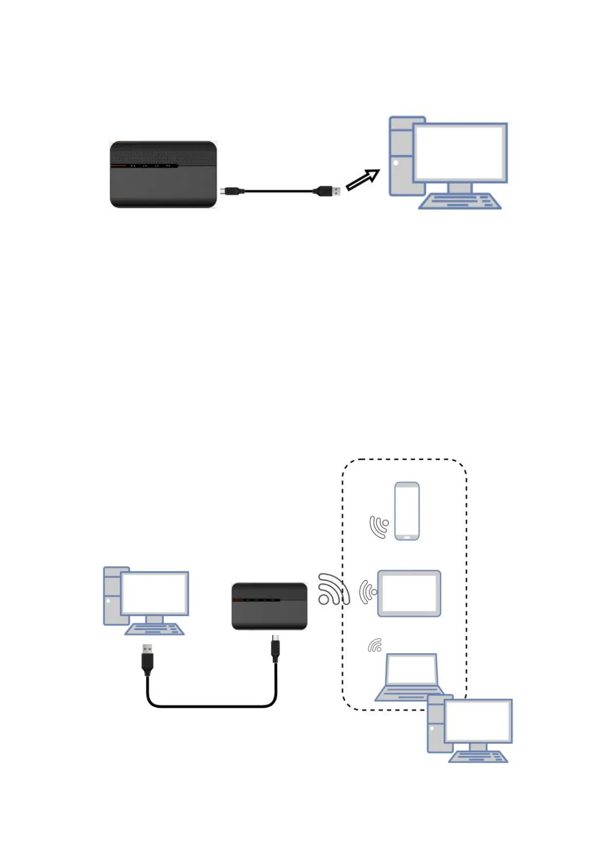 Computers & laptops may be connected to the 5G MiFi KT-M3A via Type C cable for Internet Access.