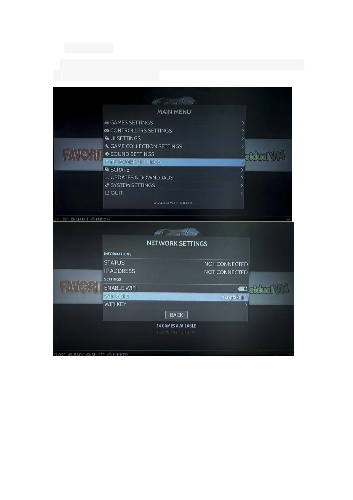 START---->>NETWORK SETTINGS---->>ENABLE WIFI, then select the wifi network